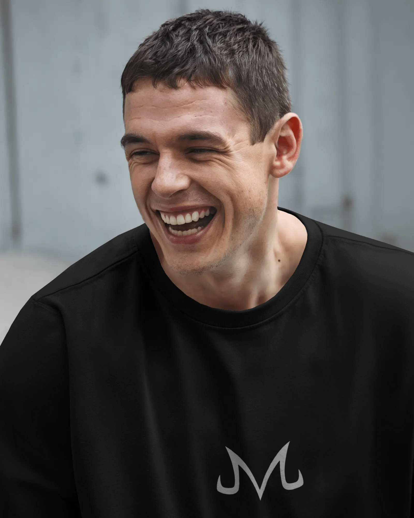 🔹 Parte delantera: pequeña y centrada “M” maligna, símbolo de Majin Buu, el mismo que lleva en su cinturón. Sutil, pero con identidad.